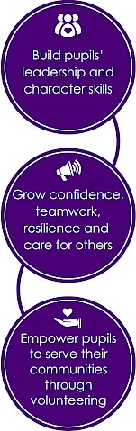 Through personal challenges, school and community action projects, the Award provides opportunities for pupils to integrate these values. Pupils work, both as individuals and in teams, with different faiths and cultures to make a difference in communities locally, nationally and globally, developing as responsible, respectful and active citizens.